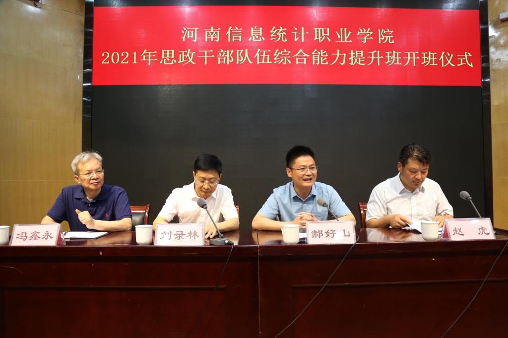 7月18日至22日,河南信息统计职业学院2021年思政干部队伍综合能力提升培训班在我校举行,该校书记刘录林、副校长冯鑫永及二级单位负责人、辅导员等60余人参加培训。
